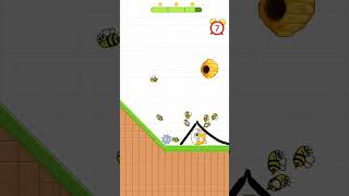 The cute dog is in danger. The evil bees came out to sting him. The only way to save the dog is to draw a line to stop these bees.