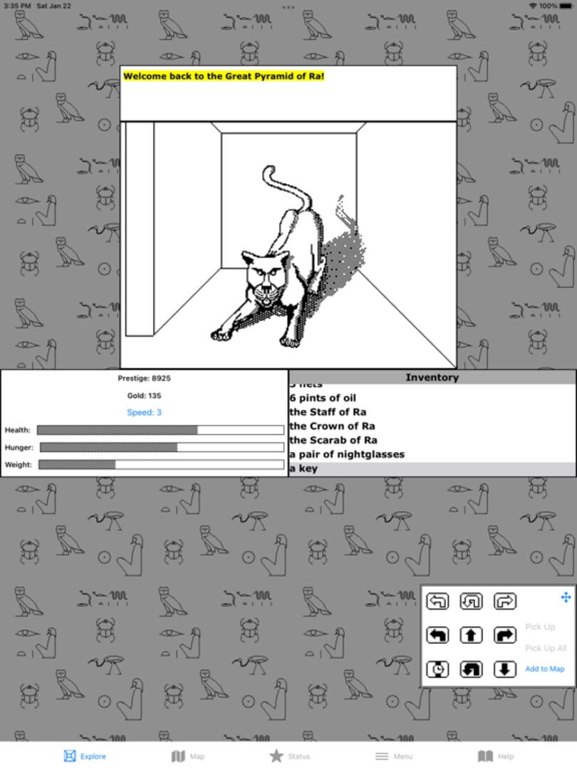 Enter the Great Pyramid of Ra, face challenges, and search for the Talismans of Ra in this updated, retro-style classic adventure game.
