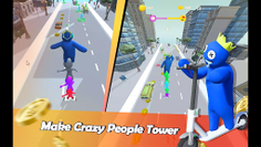 Pick up characters and friends on the way you drive through to build the highest people tower as much as you can, how high will it get?