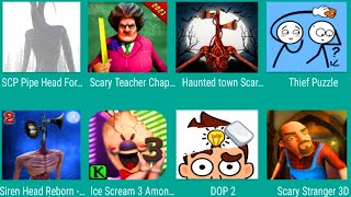 SCP Pipe Head,Scary Teacher Chapter 2,Haunted Town Scary,Thief Puzzle,Siren Head Reborn,Ice Scream 3Game Blue 2018