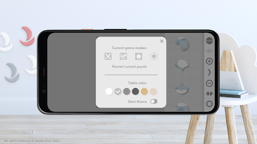 ● arrange jigsaw puzzles on a background image or without this hint, basing on your memory; in every moment you can remind yourself of a picture for three seconds – just press an eye button