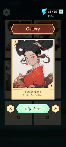 Secrets in the painting,Spot the difference game features illustrations drawn in an ancient martial arts style, showcasing exceptional artistic techniques and unique artistry. Your task is to find 5-10 differences between two similar illustrations, putting your observation and concentration to the test. Unlocking levels will gradually reveal the stories and cultural backgrounds hidden within each illustration, and you'll collect 27 exquisite Chinese-themed illustrations of famous figures.