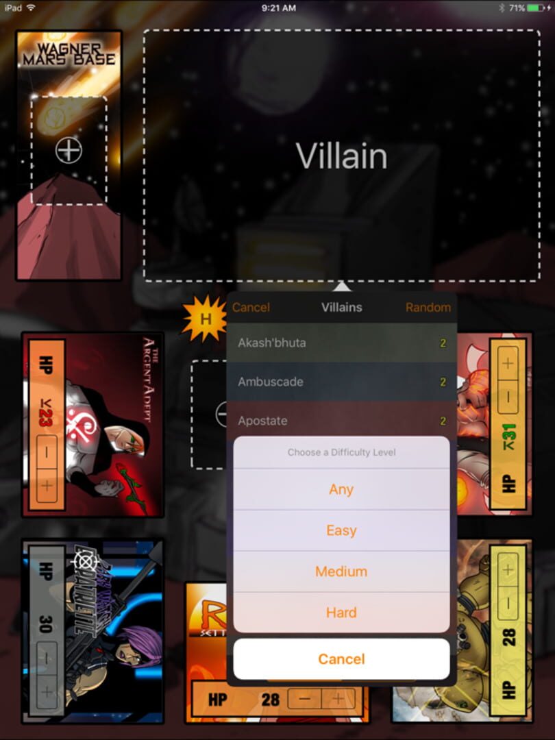 The app also makes setup easier, like setting up a random game with up to five heroes with one touch. Villain difficulty and hero complexity ratings are built into the app to help players customize the game further. If players need to know the rules, errata, or other game resources, they can quickly look them up.