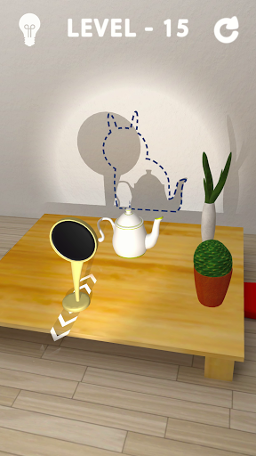 Adjust the objects by moving them to their position to form the targeted shadow. Make sure that the objects don't collide with each other it may reset the level. After achieving the targeted shadow you can see the shadows getting into life and moving around.