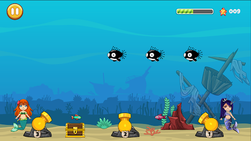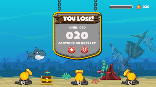 Get into position and fire your bubble cannon at an array of enemy fish, sharks and a few other surprises. Collect coins to reload. Dodge mines and torpedos and whatever you do, don't touch anything that glows in the dark!
