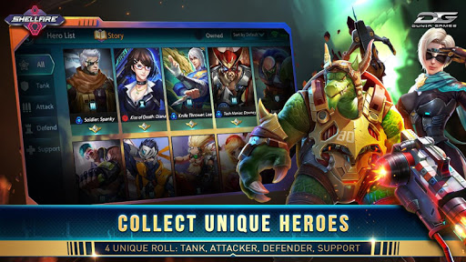 ShellFire is a 5 vs. 5 battle game featuring game escort, death match, capture points, and a zombie rush bonus mode. Combine runes and badges to become the top-ranked character with new heroes and skins available every week.