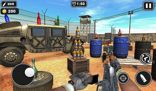Play the bottle hunter game where you choose the guns and shootout bottles. Done playing army training game now start firing bullets in the air to smash bottles. Play best sharpshooter game, grab real pistol and fire arms in your hand and pull the trigger. Take precise aim to take a perfect shot in bottle breaking game. Smash bottles and earn points to increase your high score in bottle shooting championship. Play amazing gun bottle shooting game with different obstacles and hurdles in your way. Use real pistols, rifles and fire arms in this real bottle shooting game for 2019. Forget the bow arrow or throwing balls it's time to grab modern weapons and get on shooting range. Play the bottle hunter game smash bottles by using real firearms and rifles in shooting range. Show the real shooting skills in this expert bottle shooting skills to become the real shooting master. Done playing archery game can you learn shooting the moving bottles? Play stress relief game and smash the colorful bottles and solve amazing physics base puzzles like never before. Shoot the flipping bottle in the air with machine guns and multiple weapons in bottle hunter game.