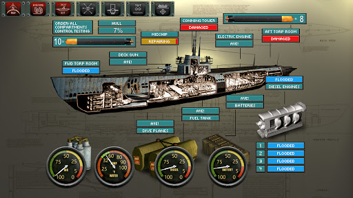 * Realistic damage models, repair your submarine, prioritize your tasks dependent whether your submarine is surfaced or not