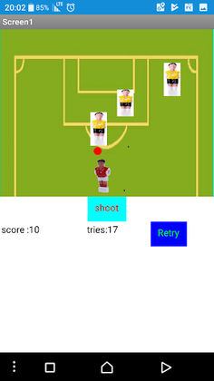 You are the red player,You need to press the 'shoot' button to kick the ball to the goal.