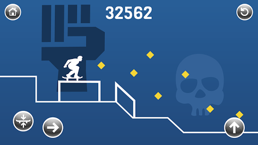 Take your skateboarding skills to the next level by riding the line and scoring points. Collect valuable diamonds and show off your grinding techniques along the rails, but be careful to avoid the deadly spikes along the way. Accumulate enough diamonds and you can use them to unlock new skate characters and themes to take your game to the next level. Keep your eyes on the prize and navigate forward with the right arrow button. When obstacles arise, jump over them with the up arrow button. And level out your skateboard with ease by tapping on the skateboard icon button. So get ready to show off your moves and ride the line to victory!