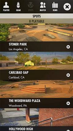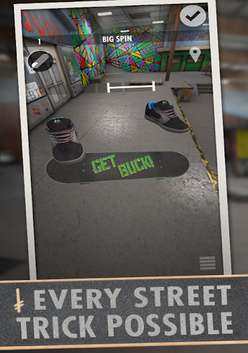 This is the first touch-based skating game to include the full range of street tricks. Jump from Ollie, Switch, Fakie and Nollie and perform all standard flip tricks; with the inclusion of body rotations you can even do tricks such as Front-Side Flips and Big Flips. Get even more tech with recent updates which now include Late Flips, Reverts, Ghetto Birds, Impossibles, Dolphin Flips, Dragon Flips and Gazelles. Chain everything together with manuals, nose manuals and every kind of grind and slide.