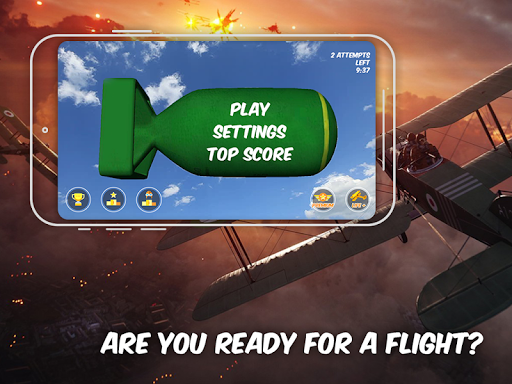 Fasten your seat belts, put on your helmet, goggles and get ready for a flight. Your trouble-free heavy machine gun and your favorite bombs will surely lead you to success. Your seemingly simple warplane is capable to force to reckon with yourself and become a real bomber, bringing destruction to your enemies from behind the clouds or hitting targets in the midst of the clear sky. You are not holding a simulator - you are holding in your hands some stunning explosions, air chases, incessant shots and fantastic air pirouettes.