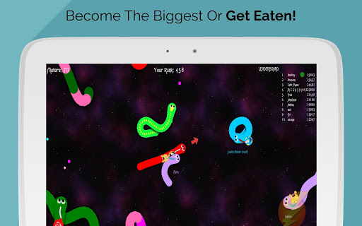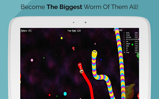 Slither Worm IO is an addictive mobile game where you fight with other snakes to become the biggest slither in space. In this game you are a snake instead of a blob and the goal is become the biggest and longest slither reptile in the game.