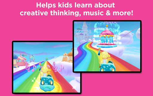 RAINBOW COASTER RIDE! Explore the magical world of Rainbow Cove as you travel along the rainbow coaster. Play different activities with Barbie and solve challenges from the Notto Prince as you drive past animated track elements and places you love from Dreamtopia™! Collect different colored prisms along the way for speed boosts!