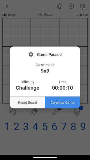 8. If you leave Sudoku when not finished, it will be saved automatically. Feel free to go back to the game