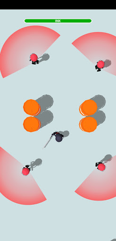 Solve the puzzle of drawing the shortest path out of the enemies field of view and avoiding obstacles or you will run out of ink or get detected by the enemy.