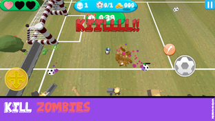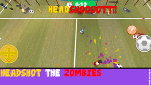 The game begins with the player in a deserted soccer stadium, surrounded by zombies. The goal is to score as many goals as possible while avoiding the zombies and staying alive. Players can move around the field by using the joystick on the screen and use various actions, such as kicking, passing, and shooting, to score goals.