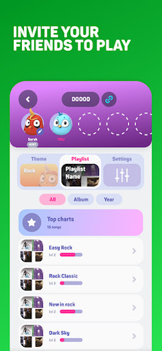 Challenge thousands of players worldwide in SongTrivia2. Choose themes, unlock playlists and earn experience to beat opponents, or create private games with friends.