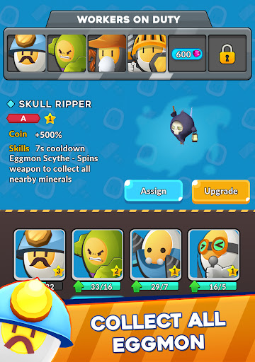 🔹 Collect & Train Eggmon: Hatch dozens of companions, each with unique skills to strategically boost your mining power.