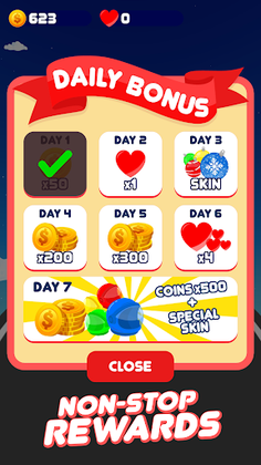 Have extra fun in flying over between the roads to grab bonus rewards in darts aiming style.