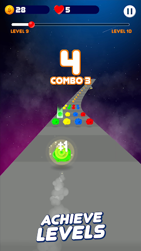 Space road is a color matching ball game in which you need to roll your ball to the same color balls on twisty road throughout the space and galaxy.