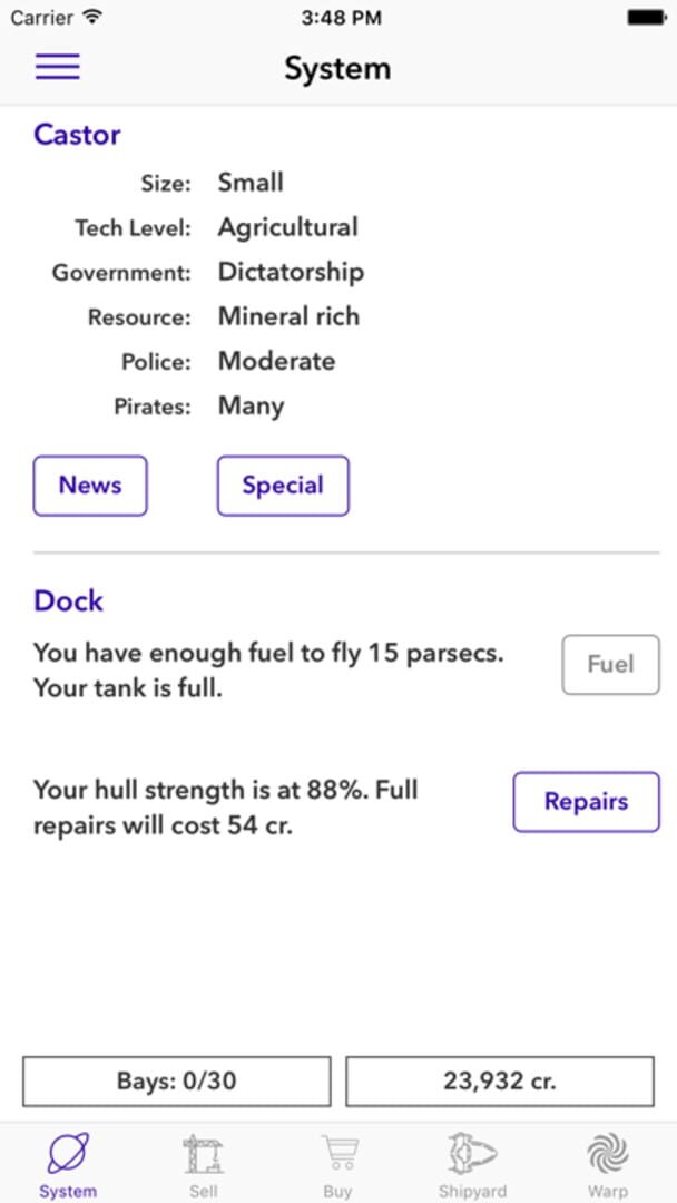 If you require any assistance or need to report a technical issue, please reach out to us at hello@spacetraderios.com.