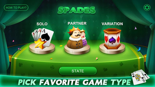 Play Spades in multiple game modes to experience the different gaming fun. Select whichever you like and enjoy by yourself or with your partner.