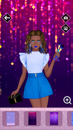 With fresh brand dress up game you have never seen before, modern and fashion interface for endless variations of dress up and makeover. You can continuously try variations of skin colors and hair style. The way you can select it is better than ever, simply scroll and swipe it. Same with the hair style, endless scrolling of hair type will give the perfect style result. Once you have a hairstyle you can make an awesome makeover. Just click the makeover icon to zoom the face. Isn’t it much better? Select eyelashes, shadows, cosmetics, blush and lipstick. Don’t limit yourself, try everything in this makeover. Superstylist girl always try experiments. Еye glitter is the “must have” now. Tons of various glitter you can apply in this makeover which look gorgeous. Apply it carefully around the eyes, check it while the eyes are open and then closed. Make it compatible with the texture of the blush, make it exactly as it needed, do not put more than it is necessary if you do not wish them to drop your dress, in other word, do not be greedy with glitter makeup, be wise. I know it is hard to be fashion star. Once you finish with the makeover you can continue with the dress up.