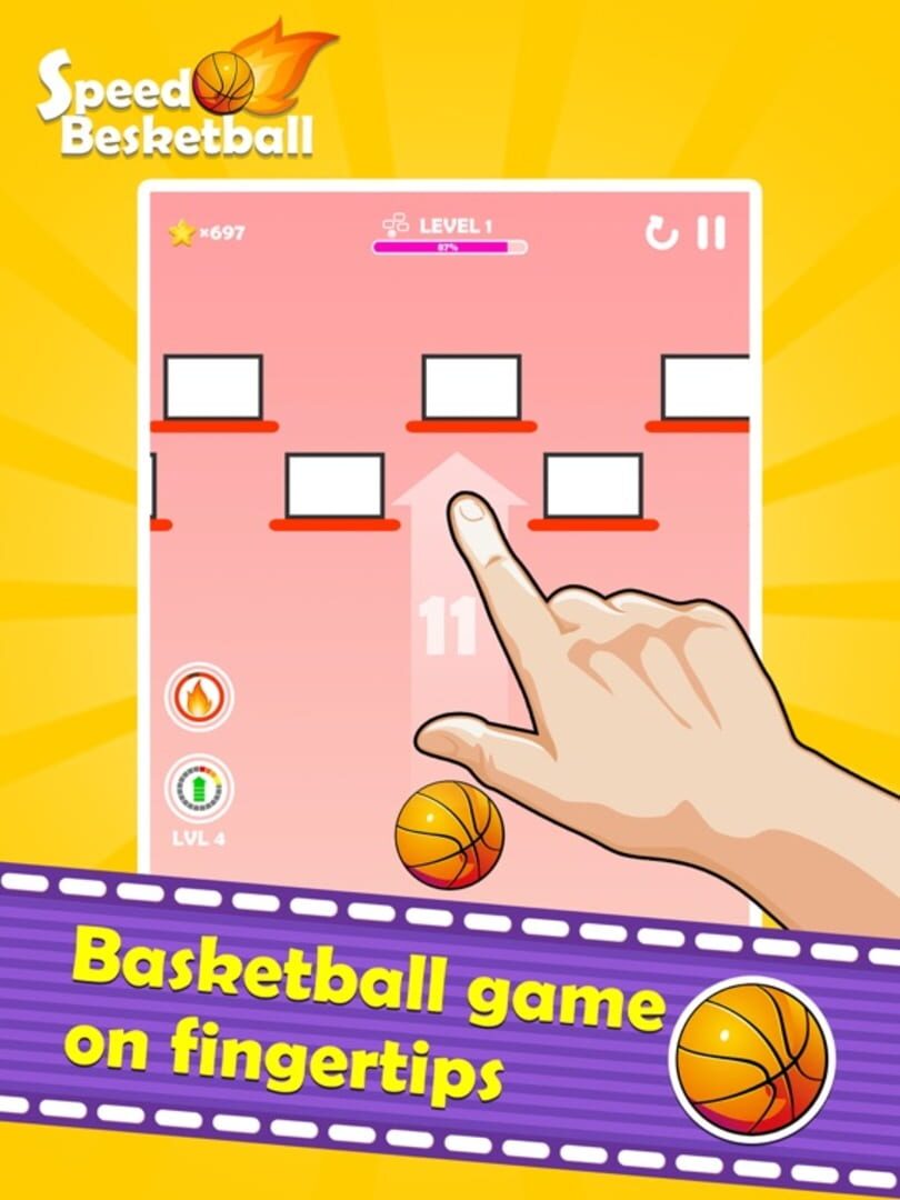Speed Basketball": Addictive finger-sliding basketball game with competitive global leaderboards, five unique modes, and social media sharing.