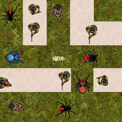 Giant spiders are headed for the town and your job is to strategially place soldiers to prevent the spiders from getting to the town.