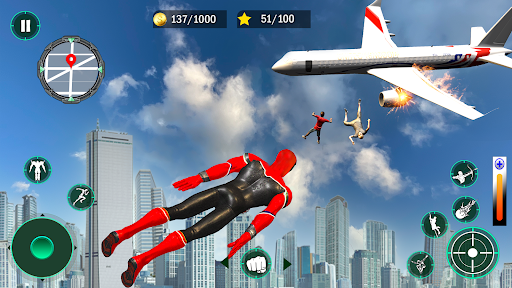 Show everyone who is the real rope hero man and eliminate all fake competitors from the gangster's city of heros. Gangsters are always ready to attack and burn the city, rope hero get into the action and save the people against city criminals. The city map is open from the start of the game that's why the man hero is always aware of what is going on in city streets. Wear a Sci-fi suit, get in the super shooter car and reach the city town to target gangster like a mighty rope hero in this flying spider games.