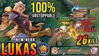 26 Kills + 2x MANIAC!! Lukas MLBB New Hero 100% UNSTOPPABLE!! - New Hero Tryout ~ MLBBGameplay Proplayer