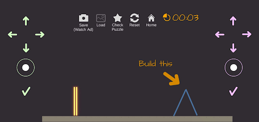 Tower-building game. Manage two sticks, move and rotate them, and test their strength by adding more sticks. Save and compete with friends.
