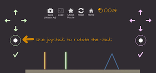 This game is packed with exciting features! You'll be able to manage two sticks at once, which you can move and rotate however you want. If you accidentally release a stick, no worries- you can re-hold it by simply clicking on it.