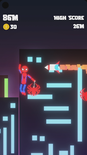 Get ready to embrace the power of Spiders and swing across a mesmerizing futuristic city, all while dodging menacing rockets and collecting precious coins.