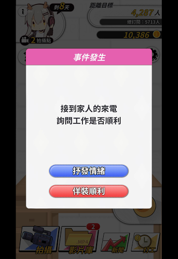 Select the type of video that are going to be filmed, follow the trend, get subscribers and handling pop-up event! Encounter haters? Embedded advertising and increase income? Blackout?