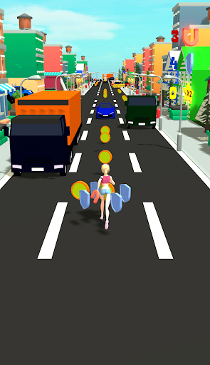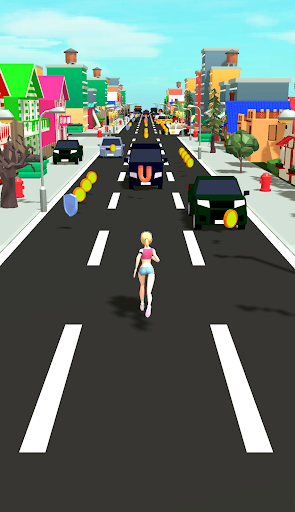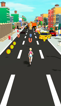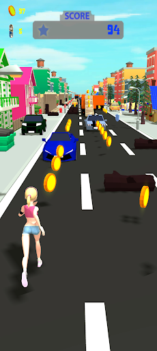 Run around the city, collect coins and bonuses, dodge cars.