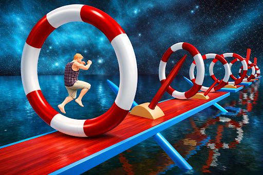 In Stuntman Water Run there are series of challenging missions, early missions are slow and easy but when you move up you will feel the real thrill and difficulty in high-speed running game. Balance yourself carefully on moving balancing platforms in sea run and be aware of boxing punches otherwise you will be smashed Badly in top runner game.