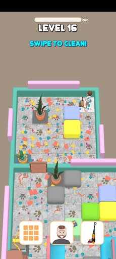 Get ready to experience a delightful and soothing puzzle game with Suck it Up! Transport your character across various rooms with a simple swipe of your finger and watch as they gracefully glide through each level. Witness your character tidy up each room with their trusty vacuum cleaner in hand, making sure no dirt or debris is left behind.