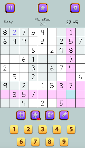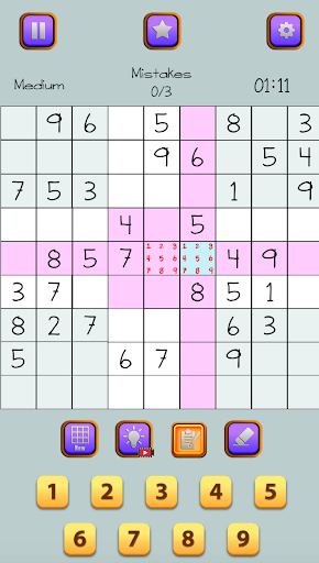 Beside this if you stuck at some point and need help, simple tap the hint button to get hint. You can also make notes to solve puzzle. Erase button allows you to erase your mistakes. You have 3 chances of mistakes in this Sudoku for Free.