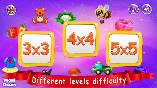 Toddlers, teenagers and older people can play educational offline games for free of sudoku tiles. The rules of the toddler games are the same as in the classic Sudoku crossword game, but instead of numbers, there will be different sudoku kids pictures. Toddler flashcards divided into categories: Vegetables, fruits, animals, insects, dessert, toys, clothes, shoes and others. To solve soduku puzzle free, you first need to select the category in which you want to play, then select the difficulty of 3x3, 4x4 or 5x5 and start filling in the empty cells so that not a single picture is repeated in the rows and columns of a large square. If the cells are filled in correctly, then the winnings will appear on the screen. If the cells are all filled and the win does not appear, then you need to click on the “refresh” reset button and try again. For the earned reward, it will be possible to open new categories of the puzzle games for adults.