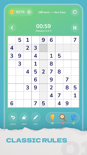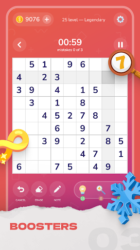 • Boosters that increase your pleasure of classic sudoku games.