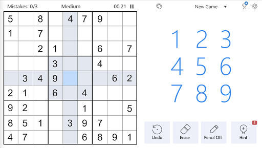 - Highlighting of a row, column, and box related to the selected cell