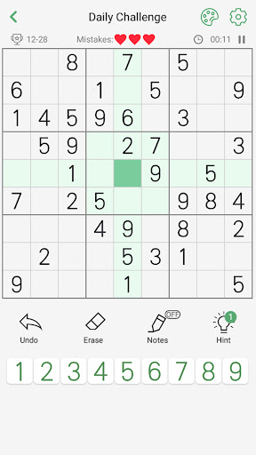 Each row, column and palace contains number 1~9 once. This mode will bring you into puzzle mania. Fun mastermind puzzle game will lead you into sudoku puzzle world.