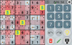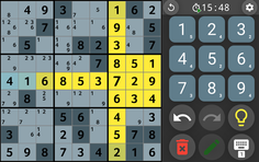 The goal of the classic Sudoku free game is to fill the free cells with numbers from 1 to 9 so that in each row, column and blocks, each digit is encountered only once.