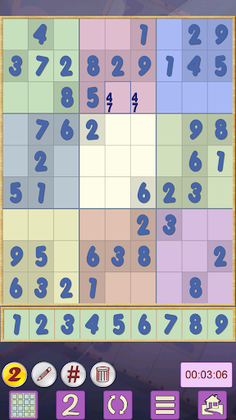 You will need to use all your powers of deductive reasoning to solve the unlimited supply of boards that Sudoku can generate. Sudoku supports the ability to mark each board square with possible moves to aid in the puzzle solving. Sudoku also supports the ‘cross hatch’ marking aid to solving puzzles.