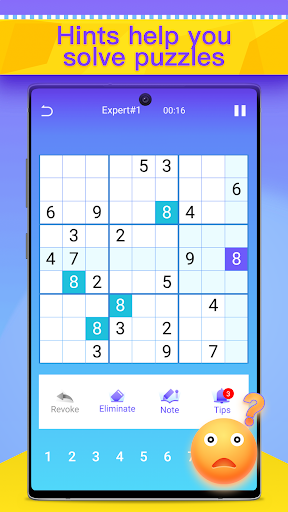 Sudoku Adventure has four difficulty levels: easy, medium, hard, and expert. Play easy levels of puzzles to exercise your brain, logical thinking, and memory, or try medium and hard to give your mind a real workout. We also have some features that make the game easier for you: hints, notes, auto-check.