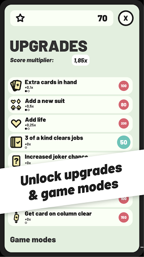 Get ready for a thrilling gaming experience with this addicting card match-3 game, where Solitaire is combined with puzzle-solving elements. Try to stay alive by matching both the suits and cards and solving the tasks to earn valuable upgrades to boost your chances of improving your high score in the game. Keep up with your friends by competing on a global leaderboard, and compete with them for the highest score. With daily bonuses to help you beat previous scores, the game becomes truly fascinating. Once you've mastered the basic gameplay, there are four different game modes to explore: