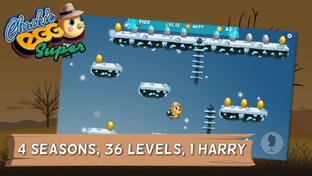 Super Chuckie Egg is a retro-modern casual platformer with vibrant cartoon art, and with varied levels each with their own difficulty level. Your progress is saved along with your egg stash.