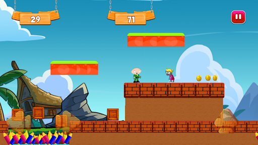 After opening the app, choose your level and start playing, then run, jump and shoot